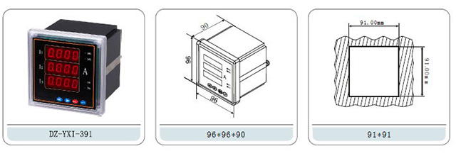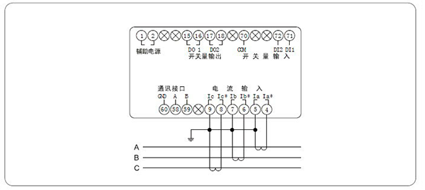顯示:三排LED同時顯示A、B、C三相電流