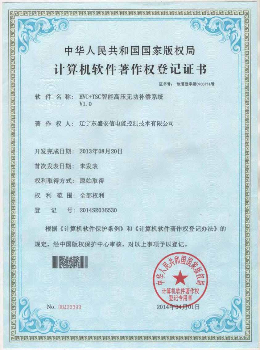 1個(gè)著作權(quán)是:HVC+TSC只能高壓無(wú)功補(bǔ)償系統(tǒng)V1.0。