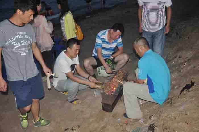 燒烤開始了 “大廚”為我們服務